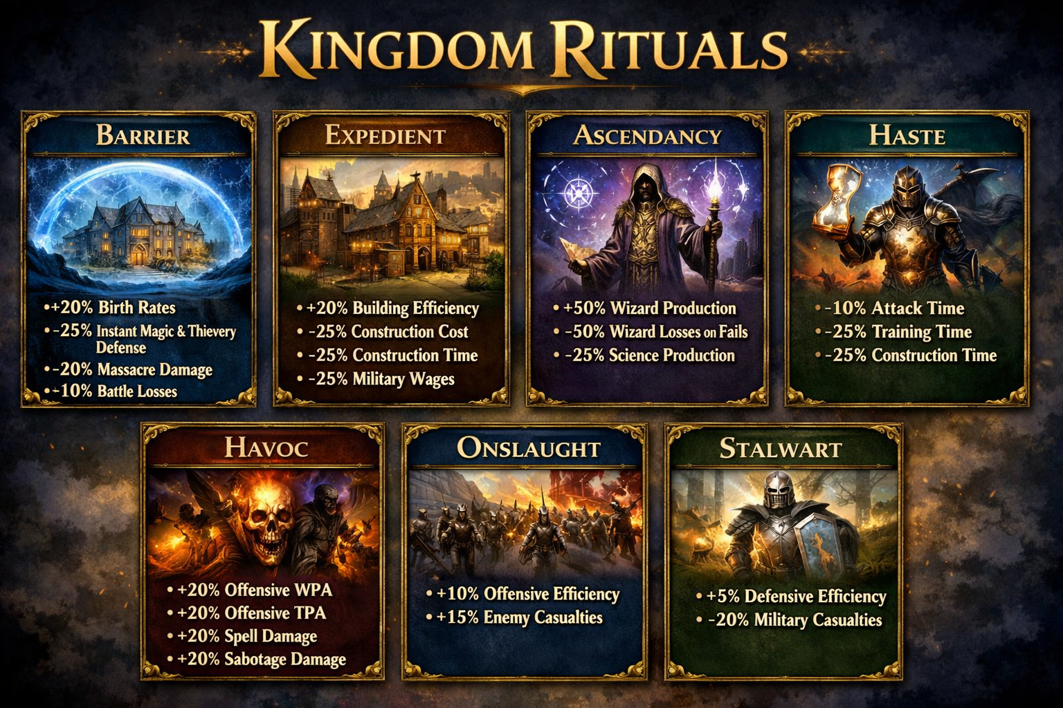 Kingdom Rituals (KR) are a new mechanic introduced in Age 72 that serves as a kingdom-wide bonus. The Monarch or Steward can begin a ritual.